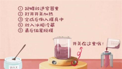 3、接下来就是制作新口红,将蜡烛放到容器里,打开开关加热;