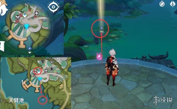 首先我们来到须弥城下方的传送点,朝着地图的西方向走,飞下去就在对面的岸上就能看见任务点了。