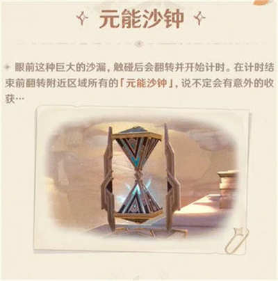 4、元能沙钟是一个巨大的沙漏,触碰之后可以翻转进行倒计时;