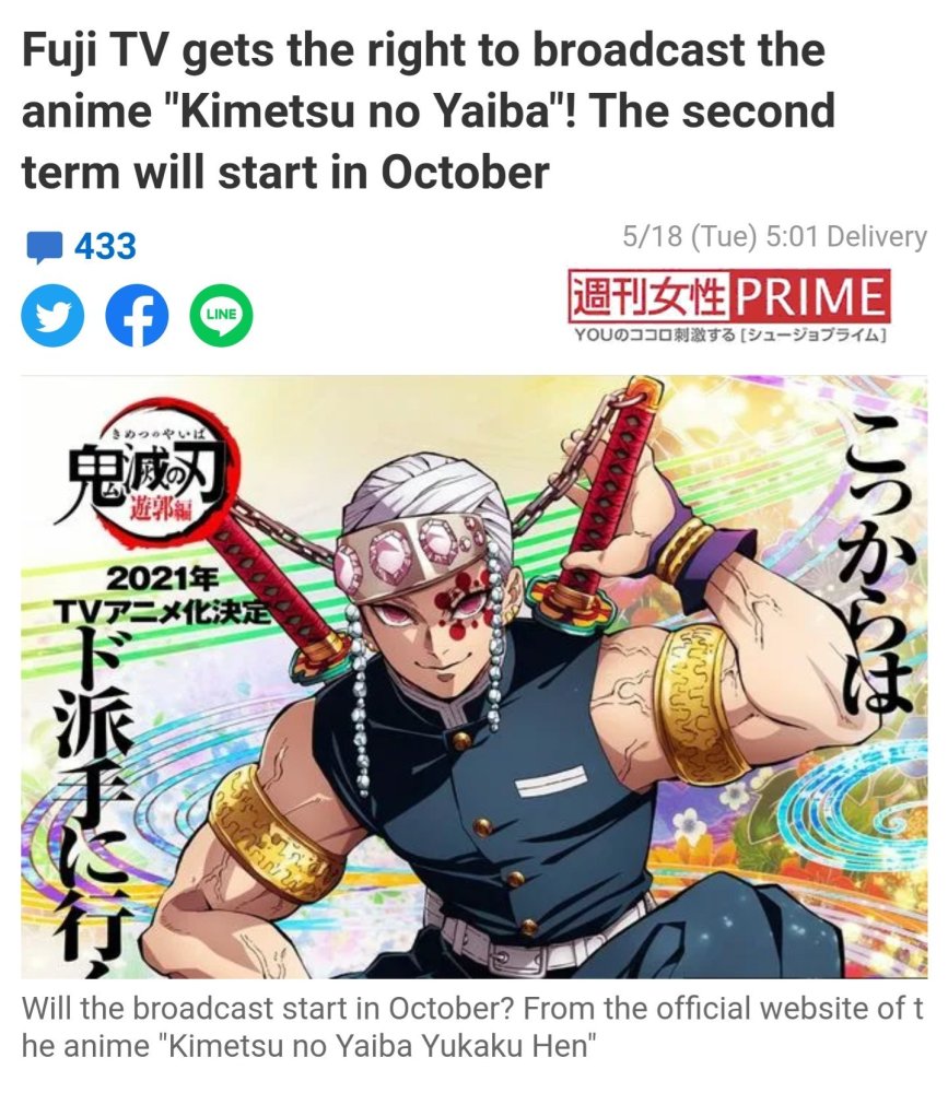 作为万众期待的《鬼灭之刃》第二季,我们终于迎来了关于它的最新消息。《鬼灭之刃》第二季将于10月份播出,不过根据岛国杂志的爆料,《鬼灭之刃》将于富士台播出,这引起了网友们的争议。