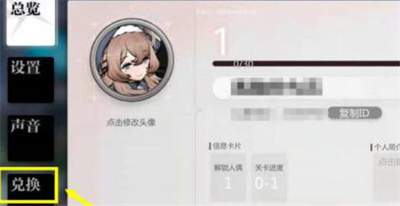 2、去页面,点击设置页面的兑换码,点击进入,选择兑换码窗口;