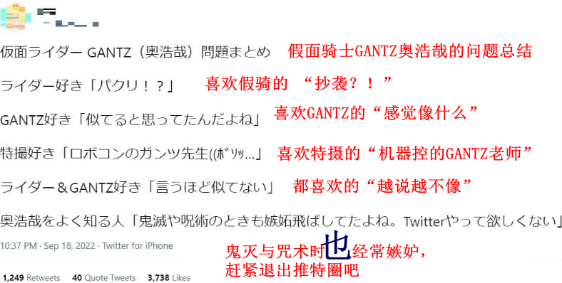 •奥浩哉于9月27日怒斥网友的言论,称其造谣说自己因为嫉妒而经常贬低不久前爆火的《鬼灭之刃》与近期当红的《咒术回战》,而且该网友言论中还引用自称“非常了解奥浩哉”的人的话,奥浩哉非常愤怒誓要制裁源头造谣者,已经通知了律师准备采取行动。
