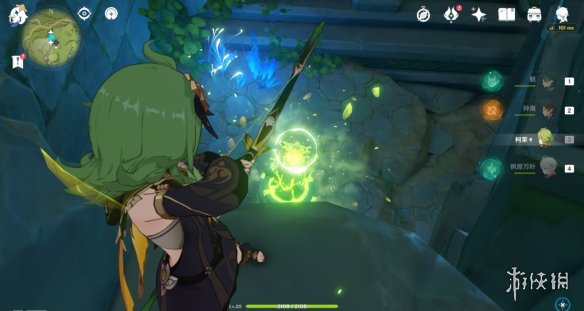 靠近藤蔓召唤草种子,我们需要携带草种子激活4处草元素方碑。