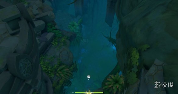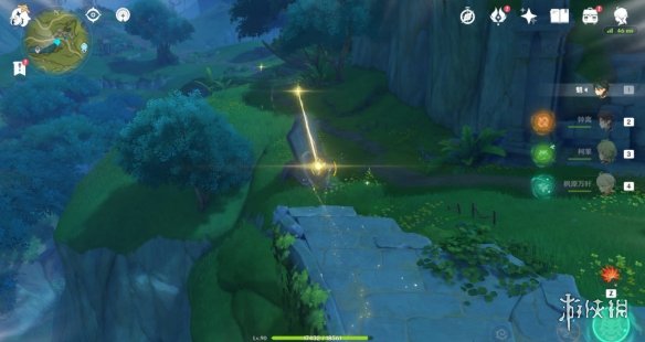 到达以及的顶部位置,低头向下可以看到下一个草元素方碑,同样激活一下。