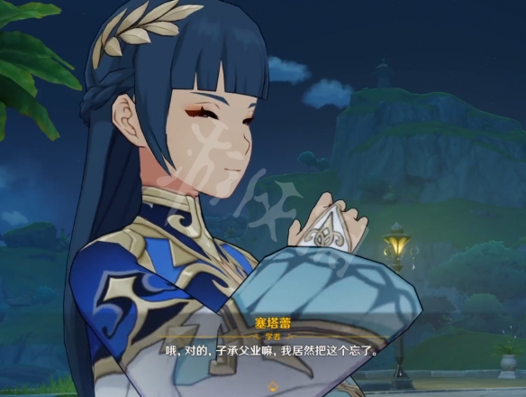 在我们刚附身摊贩阿金后,塞塔蕾就会来问我们问题。