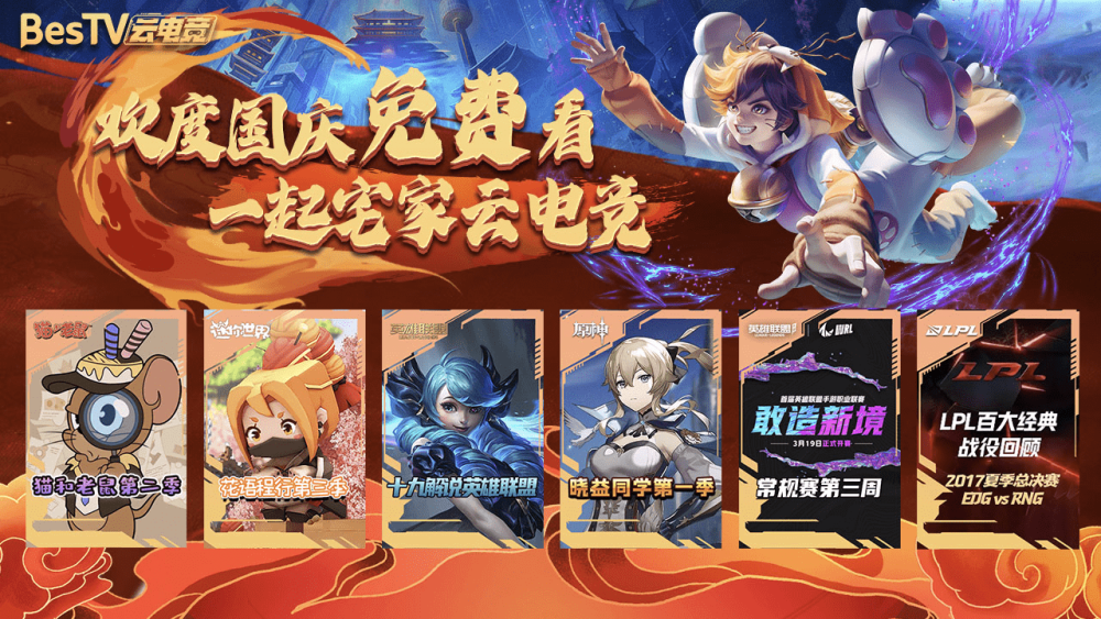 百视通提出“云电竞”创新战略以来,以公众关注的顶级赛事为切入口,在大屏端打造一个跨年龄层的电子体育平台,功能从赛事直播到游戏推荐、从热门主播到电竞教育,充分利用母公司东方明珠新媒体的资源优势,整合电竞产业所关联的上下产业链,打造具有竞争力的电竞服务平台。除头部赛事之外,百视通云电竞也致力于构建更立体的产品体系,深耕电竞爱好者刚需。目前,云电竞已聚集包括英雄联盟、王者荣耀、英雄联盟手游、炉石传说、魔兽世界、DOTA2、和平精英、我的世界、迷你世界等一批热门电竞内容,节目总量超过5000集。国庆上BesTV云电竞,明星主播热门IP一网打尽,大屏观赛更过瘾!