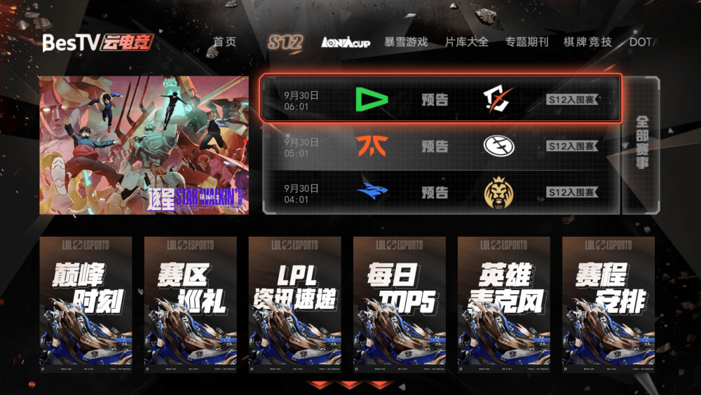 S12英雄联盟全球总决赛开打之时,正值国庆长假期间,百视通提前准备“假期集结放开玩”七天特别策划,包括“峡谷相聚快乐上星”、“大吉大利今晚吃鸡”、“霍格沃茨冒险之旅”、“主播带飞上分秘诀”等精彩内容每天上新;同时,在上海IPTV平台,百视通推出“电竞限免”专区,提供的免费内容囊括了LPL经典赛事、英雄联盟最新手游联赛、热门游戏解说等,让电竞迷们在假期中一边“组团上分”,一边学习神级操作。
