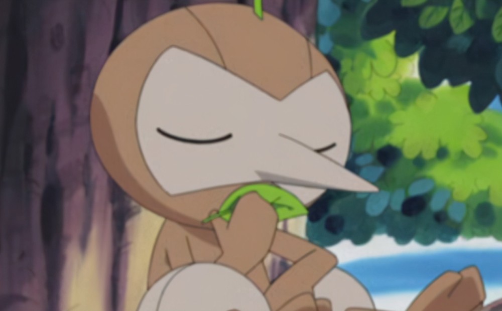 在这一集中,因为吼爆弹的关系,导致了小遥手中的甲壳茧掉落在河流附近,宝可梦们为了拿到甲壳茧却一不小心都一起掉进了河流,而为了回到小智一行人的身边,皮卡丘、木守宫、甲壳茧、龙虾小兵、火稚鸡、水跃鱼以及莲叶童子一起组成了探险队,这时遇到了一只在树上的长鼻叶,长鼻叶使用了草笛催眠了皮卡丘一行,但是实际上,长鼻叶截至八代为止,都无法真正意义上学会草笛这个招式,即便图鉴中也说到了它会吹草笛。
