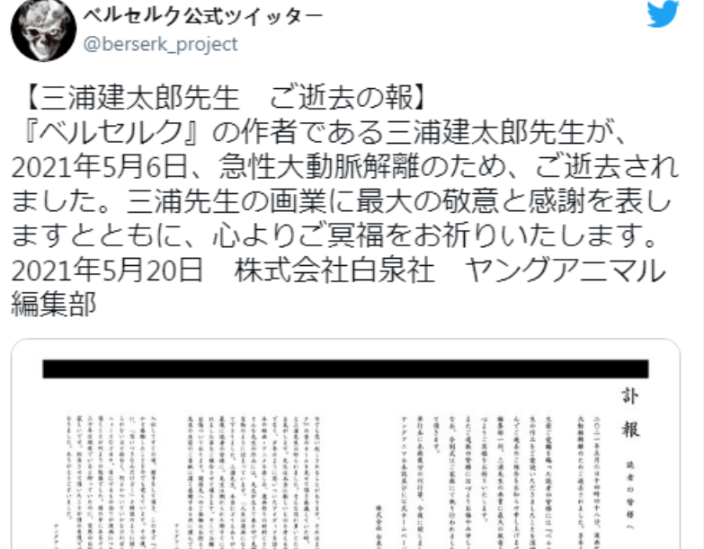 三浦建太郎也是日本一位非常出名的漫画家,他的代表作有《王狼》《剑风传奇》等。三浦建太郎曾经给宫野下明和原哲夫做过助手。特别是剑风传奇,拥有一批粉丝。这部漫画也非常好看,然而剑风传奇的故事戛然而止,因为三浦建太郎去世了,根据信息说,是因急性主动脉解离去世。