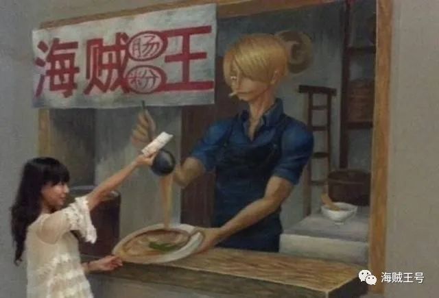 山治,大家都很熟悉了,这个角色是路飞船上的厨师。【色厨子】【山治王子】【黑足】都是他的称号。曾经做着王子梦想的山治,没想到最后真的是王子身份。图中的图也能看出来,山治在展览地所担任的职位也是厨师。不过,他所出售的东西却不一样。“肠粉”也是广东等地的特色,去过广州的朋友大部分都吃过肠粉,而图中的小哥为了迎合山治还自掏腰包,拿出了100块钱。