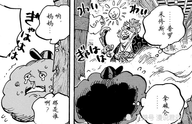 当脱困的宙斯找到BIG MOM的时候,看到的是普罗米修斯、拿破仑和新雷云其乐融融的美好氛围。此时的宙斯还不知道自己被抛弃了,只是看着大家欢声笑语,却没人关注自己,还感觉自己的位置被不认识的新雷云抢走了,于是眼泪唧唧的。