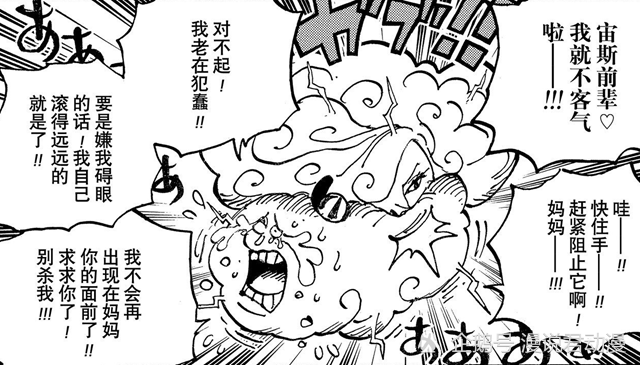 当宙斯和BIG MOM相见,遇到的不是欢迎之声,而是冷漠地抛弃之言。不仅如此,BIG MOM还让赫拉去吃掉宙斯,以宙斯的魂强化赫拉的力量。面对赫拉的啃食,宙斯泪流满满的求饶,可惜是无用的。