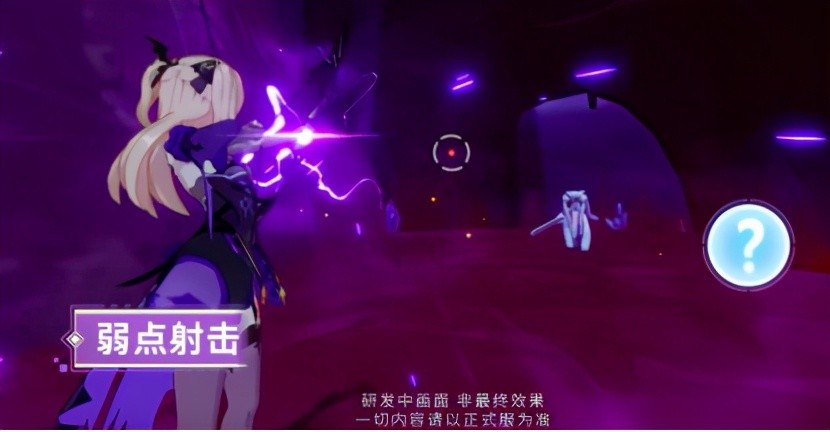 相较于《原神》,《崩坏3》是一个快节奏的动作游戏,技能的打击感也比较强,而弓箭这一武器,跟打击感其实是不沾边的,在以往的认知中,使用弓箭的角色都是远程角色,需要通过远距离攻击来击败敌人,所以菲谢尔的定位设计为“辅助”,但为了让弓箭这个武器融入《崩坏3》的玩法,又不会失去弓箭的特征,策划为此特意设计了一个核心玩法——弱点射击。