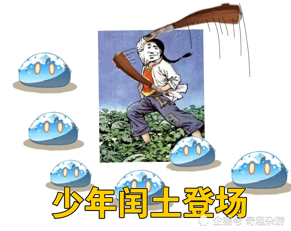 玩家除了热衷于杜甫以外,还对语文书上的闰土也很中意。拿着一个叉子叉猹的画面,像极了《原神》玩家用长枪角色攻击史莱姆的场景。