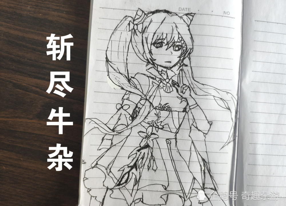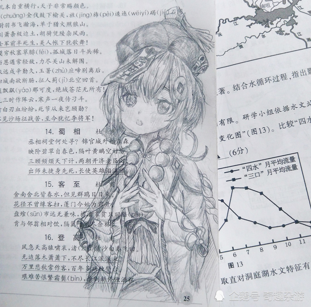 最后这里还有一张玩家绘制的七七,也是在语文书上画的,看来玩家对于在语文书上画画,非常热衷呀,因为在网上看到的这些图片,几乎都是在语文书上画的。