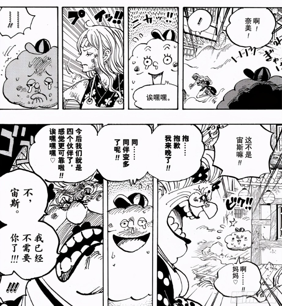 看点二:宙斯被娜美和大妈同时嫌弃!在大妈击败润媞之后,娜美和乌索普便带着小玉直接选择了逃跑。虽说大妈不会拿小玉怎样,不过并不代表会大妈放过身为草帽一伙成员的他们。要知道,大妈之所以回来和之国,主要是为了追杀草帽一伙。就在娜美逃跑的时候,遇到了宙斯,不过娜美并没有理打招呼的宙斯。之后,大妈发现了角落里的宙斯,宙斯悻悻地表示想要回归大妈阵营,不过却被大妈严厉地拒绝了。不得不说,宙斯真是太惨了,刚开始娜美还和大妈争夺宙斯,现在两人都不想要宙斯。不仅如此,大妈甚至想要让赫拉吞掉宙斯,以便达到增强赫拉实力的目的。在大妈的帮助下,宙斯连逃跑的可能都没有,很快被赫拉吞了下去。关于宙斯的结局,小编觉得宙斯应该能够回到娜美的身边,有了宙斯的帮助之后,娜美的实力增强了不少,这对于后期的草帽一伙来说十分重要。还有就是,大妈这个时候已经有了更为强势的赫拉,宙斯对大妈来说可有可无。