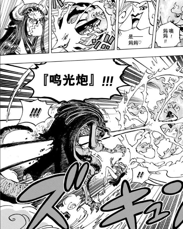 看点一:大妈轻松击败润媞!众所周知,百兽海贼团有两个特点:一是皮厚,另一个特点则是头铁,几乎所有百兽海贼团的干部都敢挑战大将四皇级别的战力。在前两话中,追杀小玉的润媞碰到了大妈,在众人惊愕中,大妈一拳打飞了同一阵营的佩吉万。看到弟弟佩吉万被击溃之后,润媞顿时大怒,不顾大妈的警告,继续向小玉攻去。不仅如此,还扬言解决了小玉之后,再来解决大妈。在这里小编不得不吐槽一句:百兽海贼团的干部都觉得自己人均四皇战力呗?看到被打伤的小玉之后,大妈愤怒地召唤了普罗米修斯,拿破仑以及新召唤的赫拉向润媞发动进攻。只是一招,便击败了凌空六子之一的润媞。不得不说,大妈打敌人的时候是在划水,打自己盟友的时候是真下死手啊。就这一招下去,润媞即便是不死,也要残啊。
