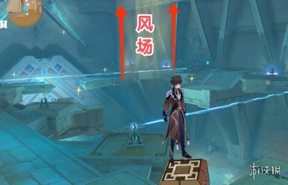 四、再次旋转两个装置,对准风元素方碑(对准后,中间会产生风场,草神瞳便可以通过风场拿到了)
