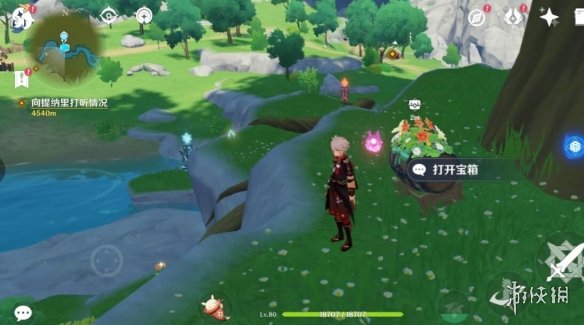 宝箱详细位置:风起地的七天神像前面的大树的后面。