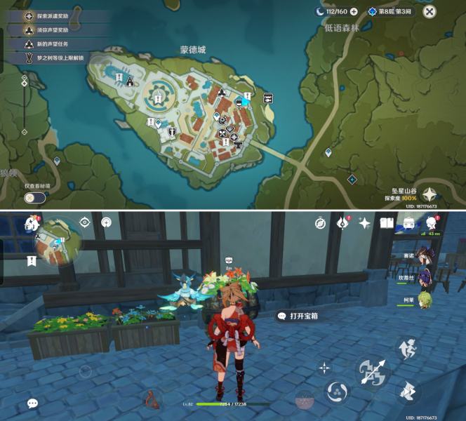 来到蒙德城传送点东北侧,前往如图位置,在猫尾酒馆旁上取得宝箱六。