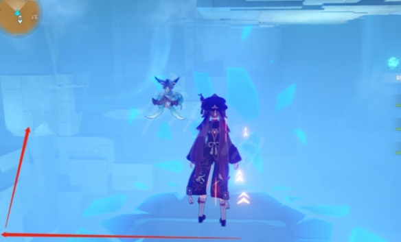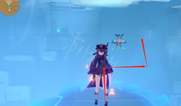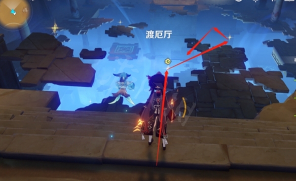 我们直接传送回刚刚的传送锚点,我们直接通过光点飞过去就行了。
