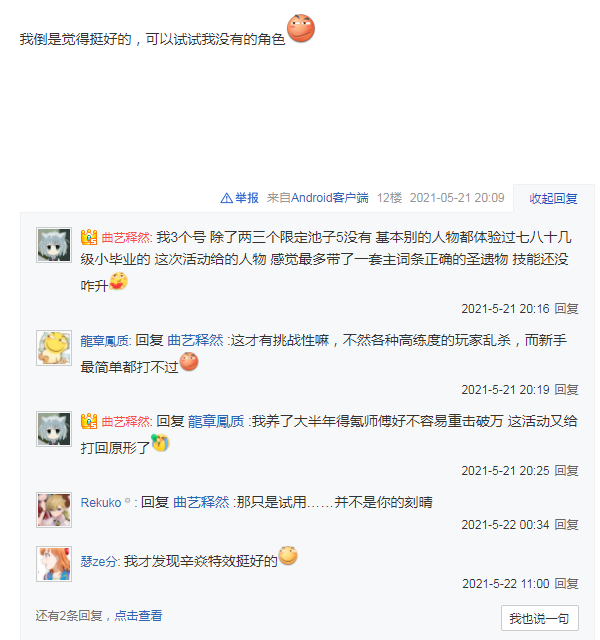 玩家们对于本次活动的评价褒贬不一,有的人觉得不能用自己的角色相当于角色白练了,有的人觉得能够玩到自己没有的角色挺有意思的,下面跟boyue具体来看下吧~