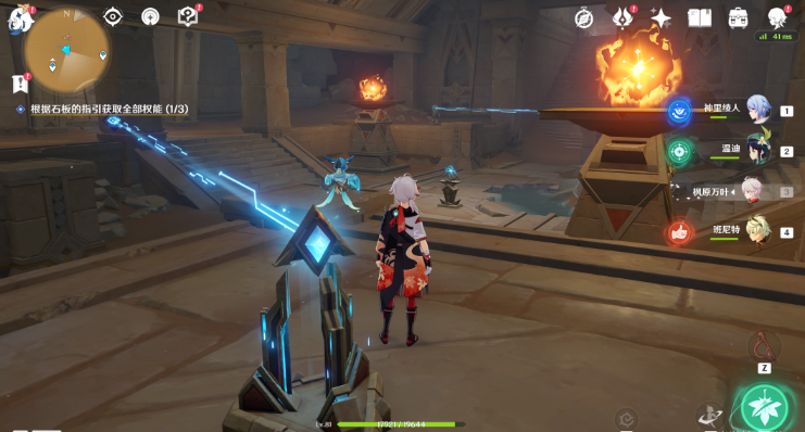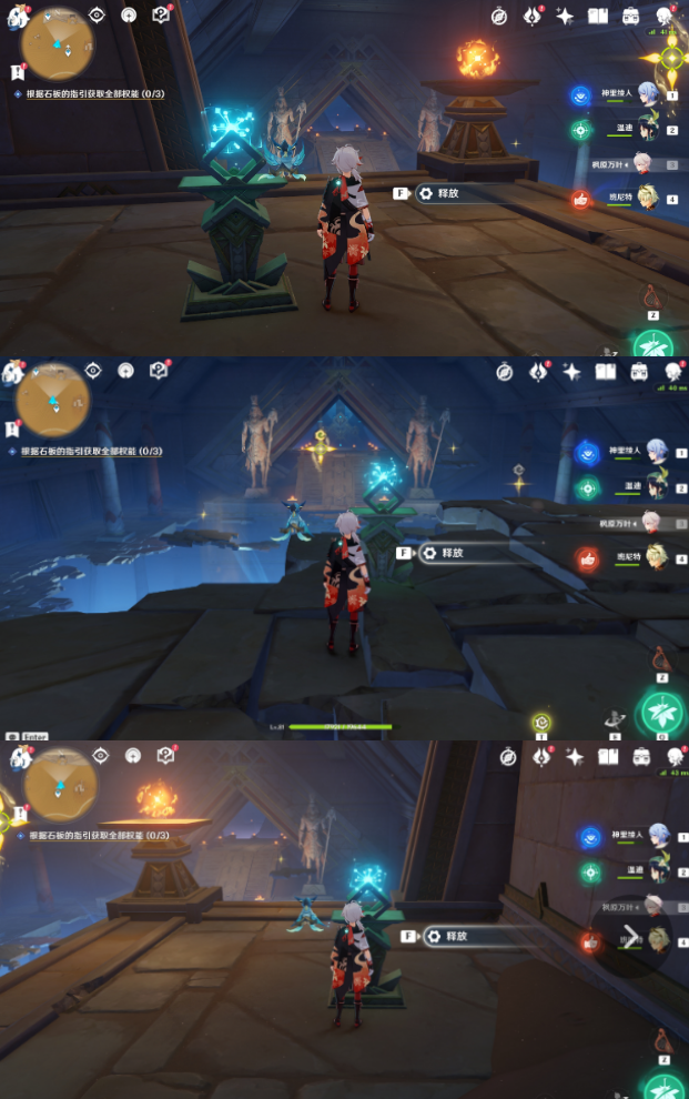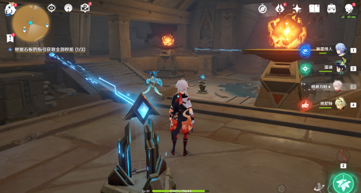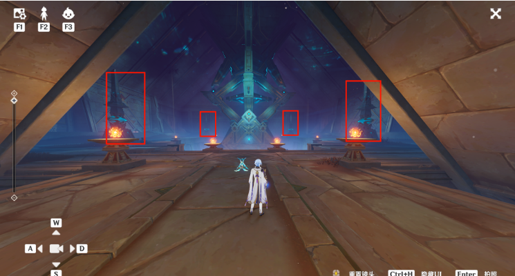 34、跟随指引进入中央装置,然后点亮三个火炬。(三个位置就是三面墙中间的[元能火种],直接释放跟随,没有难度)