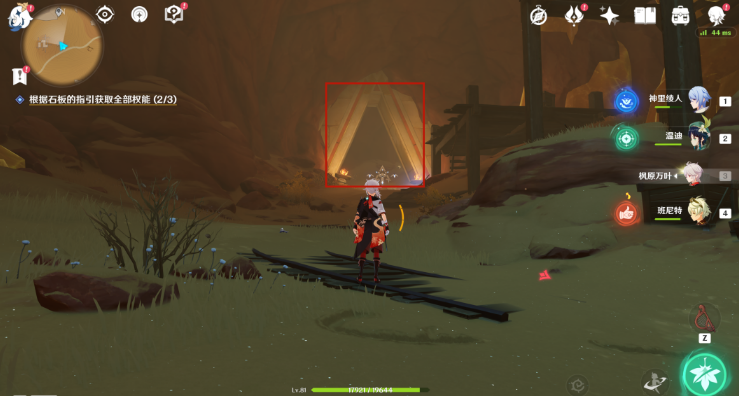 23、继续深入洞窟(跳到最底下)。然后在岔路口左转(转到丘丘人方向)。