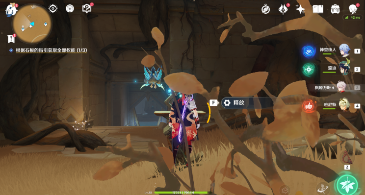 10、就在渡厄厅进行,往前一步,下方有三个[元能火种],释放并跟随即可。