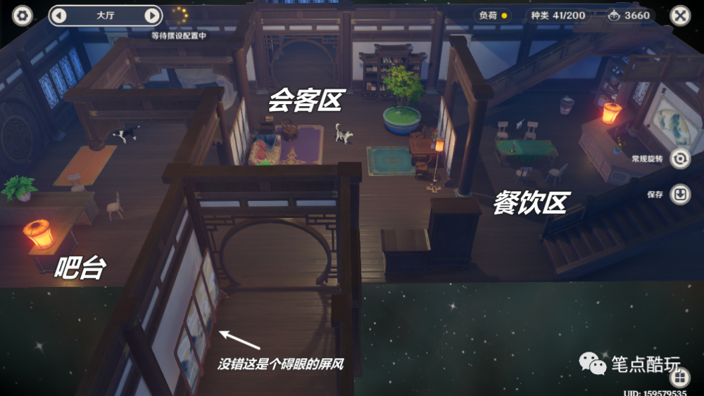 最难看的应该是二楼了。现在总仙力24000+,屏风38个也就3420,我完全可以把二楼的30个碍眼屏风,以及楼下的三五个闲置屏风全部拿掉,照样保持2w+仙力,每小时30宝钱的基础产出速度。也就是说,我的屏风矿卡早已失去用处,徒增累赘。