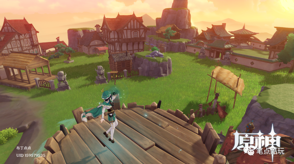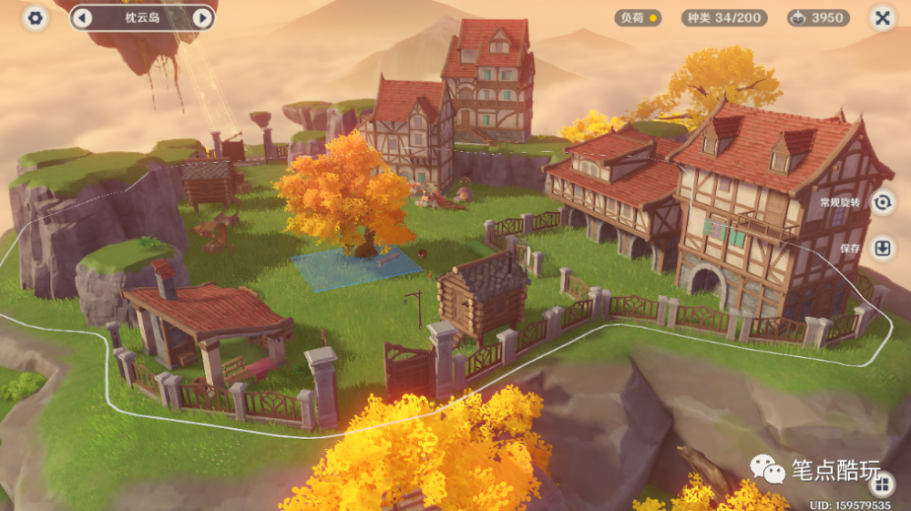 第2区枕云岛蒙德小镇。由于罗浮洞的4个空中岛都有明确的出入口,我在布置时比较注重“领地感”,充分利用山石+围栏的功能,尽量将风格搭配的违和感降低。