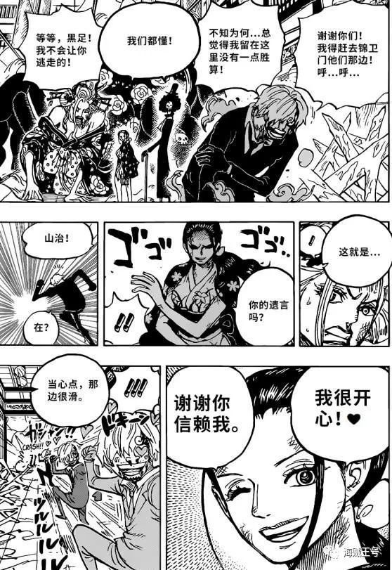 所以山治能做出这样的举动就是相信队友,这一点从罗宾的反应上我们也能够看出,罗宾还十分开心山治能够相信自己,草帽海贼团每一个成员都不一定的定位,每一个人做好自己的事情,剩下的交给伙伴就好了,所以对付女人这样的“脏活累活”只能交给罗宾了。