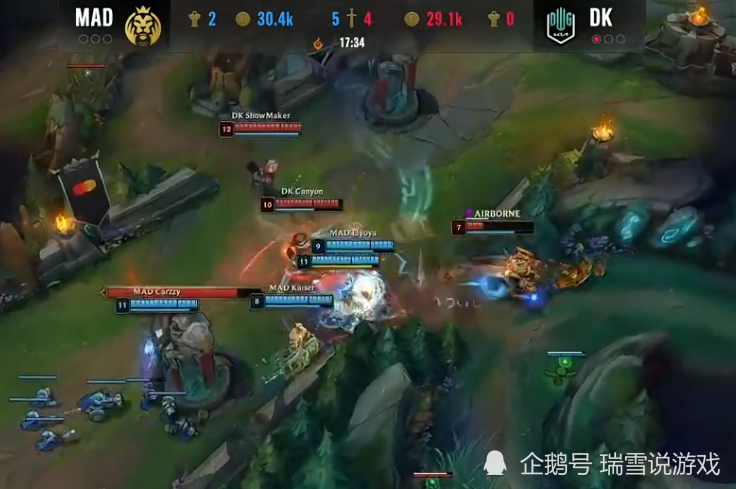 第一场比赛的胜利者是DK战队,在比赛中MAD战队的辅助思想不太多,脱离队伍范围强开对面中单,导致己方团战失利,导致游戏胜负开始倾斜。