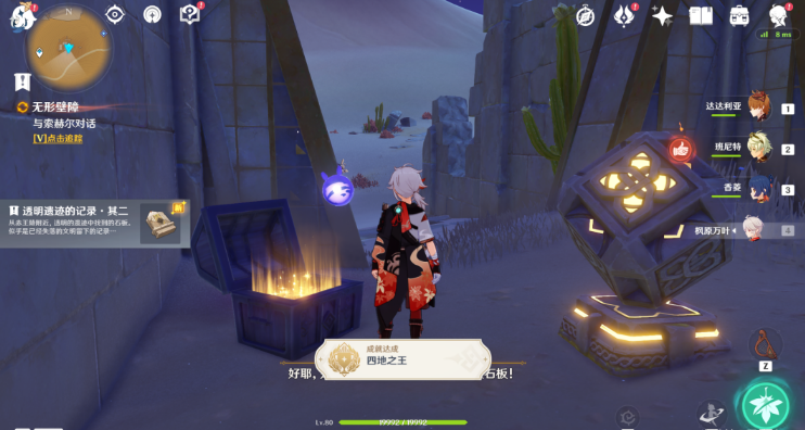 22、开启机关,打开宝箱,获得[透明遗迹的记录·其二],同时获得成就[四地之王]。