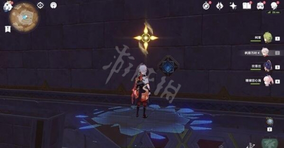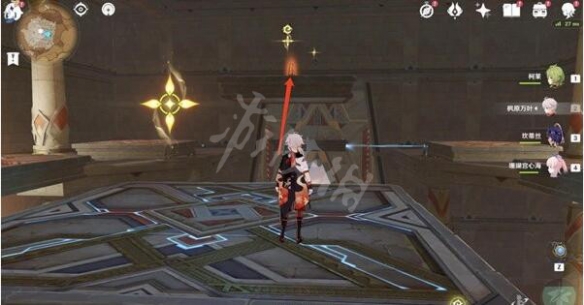 进入大厅后,利用风场和四叶印到达上方中心的红色棱形机关的升降梯。