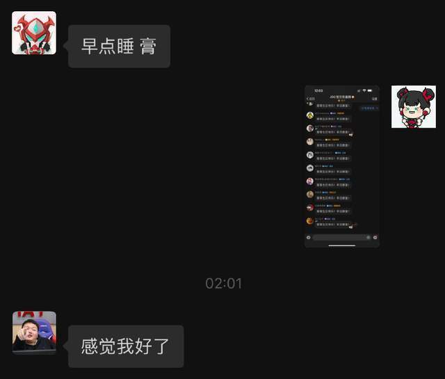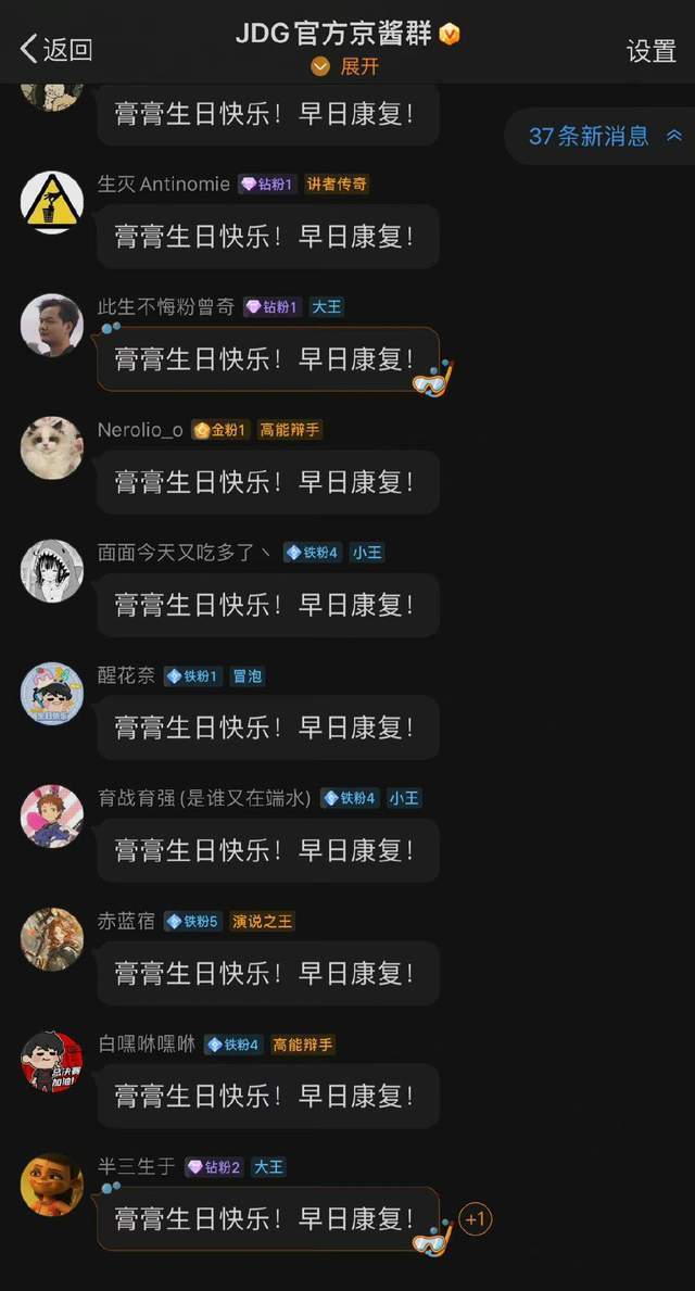 不过更让牙膏感动的还是粉丝们自发的在他生日这天送上了祝福,当俱乐部工作人员给牙膏看了粉丝群内大家送上的生日祝福后,膏子哥也是非常感动并回复道:“感觉我好了。”粉丝的暖心祝福让牙膏备受鼓舞,甚至膏子哥表示自己甚至因此感觉快康复了,不得不说这或许就是牙膏和igao的双向奔赴吧,也祝膏子哥早日康复并且与JDG在本届S赛取得好成绩。