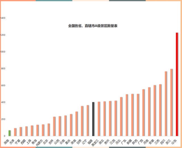 通过各省市旅游文化官网,可以得到各省份拥有的A级景区数目(含A-AAAAA),A级景区最少的是海南,最多的是山东。有人说海南省是东北的第四省,而东北人相当多祖籍山东,这是多么奇妙的一种缘分。