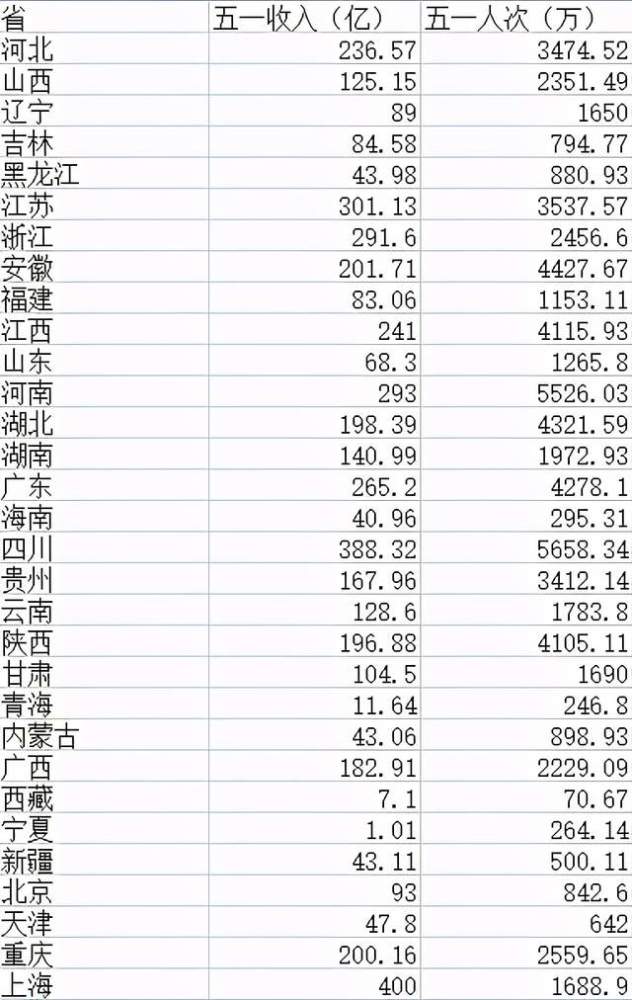 上海的消费水平,看上去一骑绝尘,一方面是因为上海本身就是高消费地区,随便去一下迪士尼都够去其他地方玩个几天了。另一方面,上海给出的数据是五一期间被拉动的消费,就是说非旅游直接创造的收益也算在内了。所以需要剔除上海的数据。