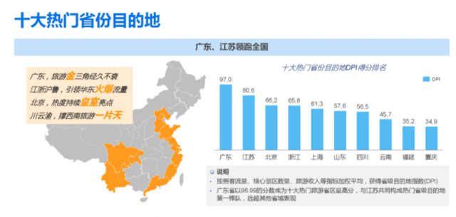 2.在第二个梯队中,省GDP在全国前列的广东省四川省,旅游消费显得十分亲民,再加上优质景区数目多,可以说是高性价比创造了前文提及的目的地热度排名。