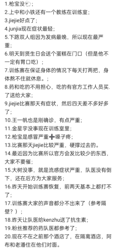 最后阿布也透露了队医已经准备了药,粉丝们推荐的药,队医也有参考,现在已经都住在隔离酒店了。