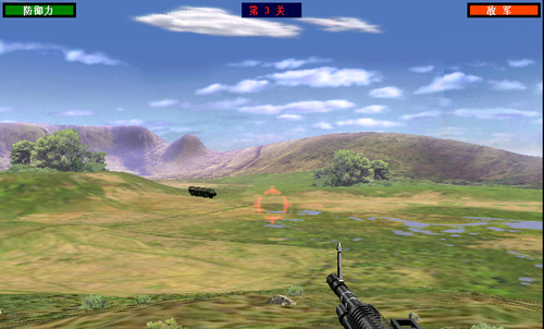 使用飞弹把运兵战车打爆炸。 当自己的大炮没有子弹,而敌军则还有战车的时候,就只能操纵飞弹来打运兵战车了。点击M键,将准星移到战车身上,就会把运兵战车给打爆炸了,但是需要瞄的准一点哦。