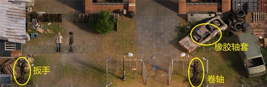 游戏中玩家可以先拾取扳手,接着拿橡胶轴套和合成卷轴。
