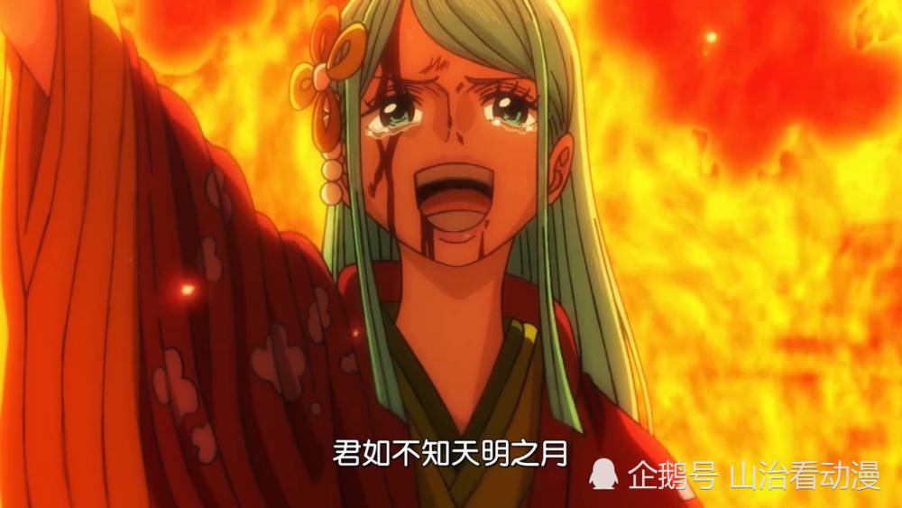 海贼王最新一集中,光月御田倒在油锅里,他已经被凯多杀死了,整个和之国的百姓都知道御田是好人,他们错怪御田了,不过御田已经死了,凯多与大蛇掌控和之国,他们还要消灭光月御田的血脉,毁了御田城,天月时最后使出时空能力,送走了锦卫门,桃之助,小菊等人,保全了光月家族的血脉。