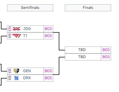 S12全球总决赛四强:JDG、T1、GEN、DRX