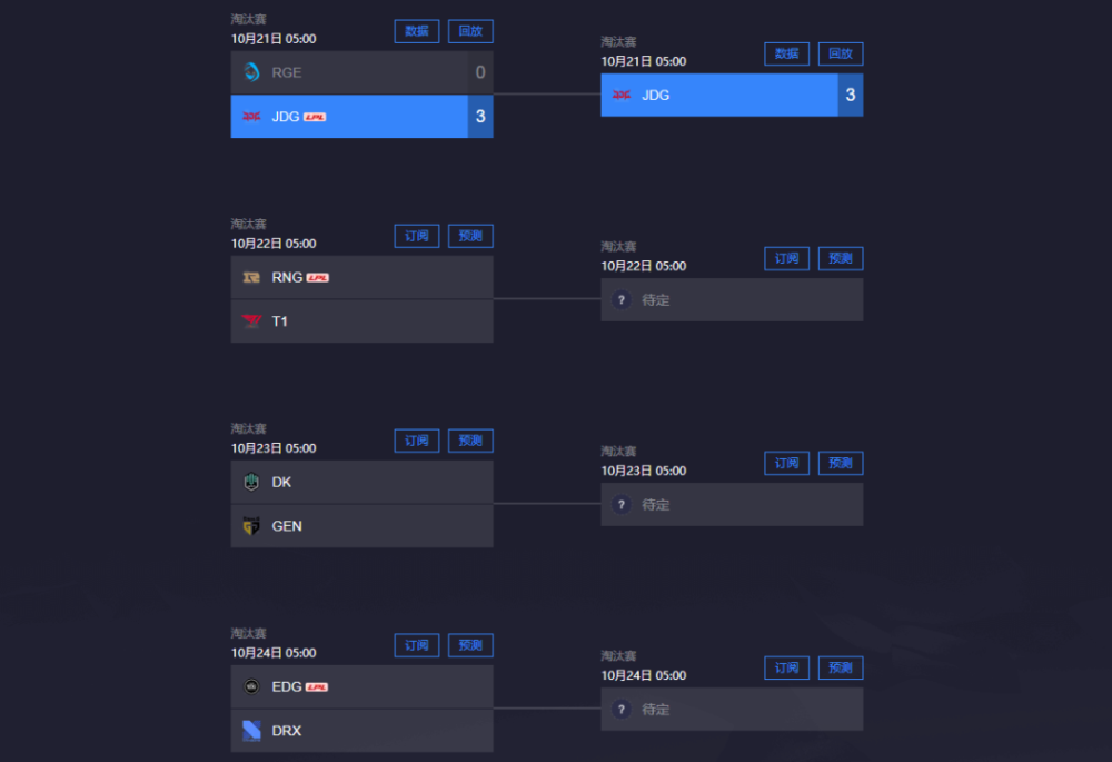 经过小组赛的激烈竞争,来自LPL赛区的JDG、EDG与RNG,以及LCK赛区的T1、DK、 DRX与GEN,LEC赛区的一号种子战队RGE顺利晋级到了2022英雄联盟全球总决赛的淘汰赛。