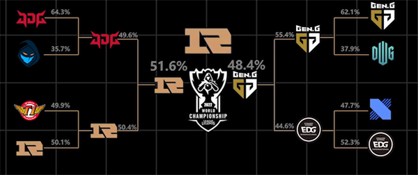 最近有一位大佬,通过AI测算,得出了这次世界赛的结果。那就是RNG是有很大机会可以拿到世界冠军的。但是在加入了队员确诊等症状后,是变成了JDG战队。如果RNG全员基本恢复,所以是非常有机会按照预测的结果走到最后的。