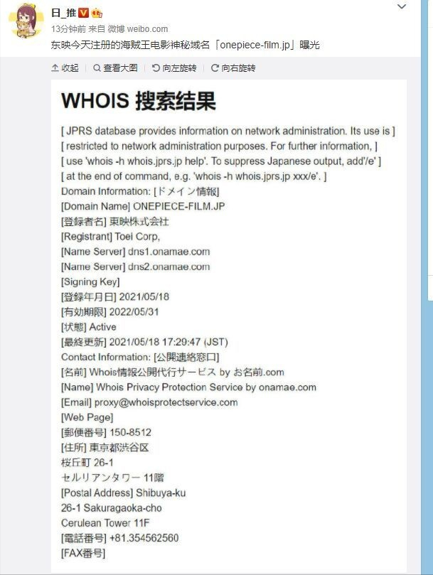 而就在最近,我们发现日本的东映公司为海贼王电影注册了神秘域名,这代表着新的《海贼王》剧场版正在策划中。