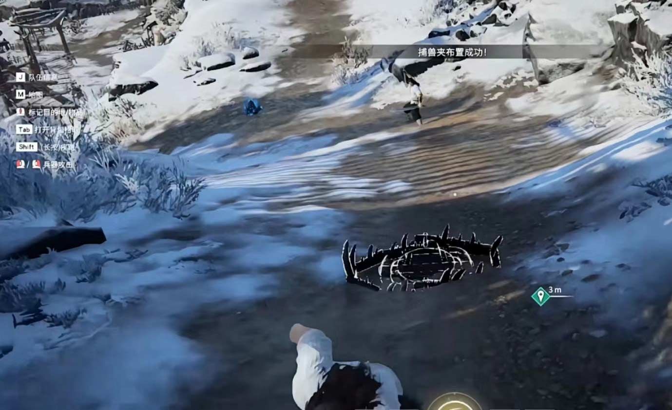 首先小伙伴们要走近捕兽夹,就会提示设置陷阱几个字,小伙伴们点击F键即可布置,布置完毕后,捕兽夹是不容易被小伙伴们发现的,所以很容易让其它小伙伴中招。