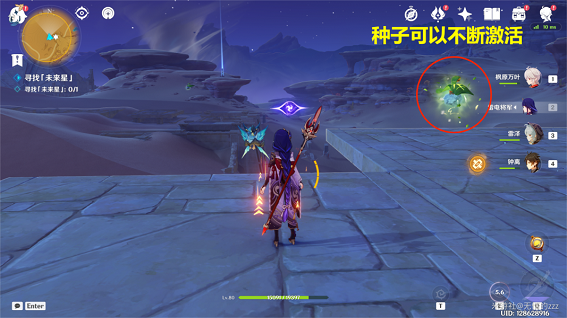 过关技巧我们需要利用雷元素来攻击三乘种子,使其变为激活状态,从而让隐形的楼梯显形出来,根据三乘种子的移动,不断刷新台阶位置