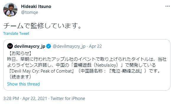 有了这些IP改编产品的运营经验,云畅游戏也开始憋大招,他们手中还有一款由CAPCOM正版授权的3D动作手游《鬼泣-巅峰之战》,在前不久先后登上了苹果春季发布会和国内小米发布会,因此一下子成为了行业焦点。